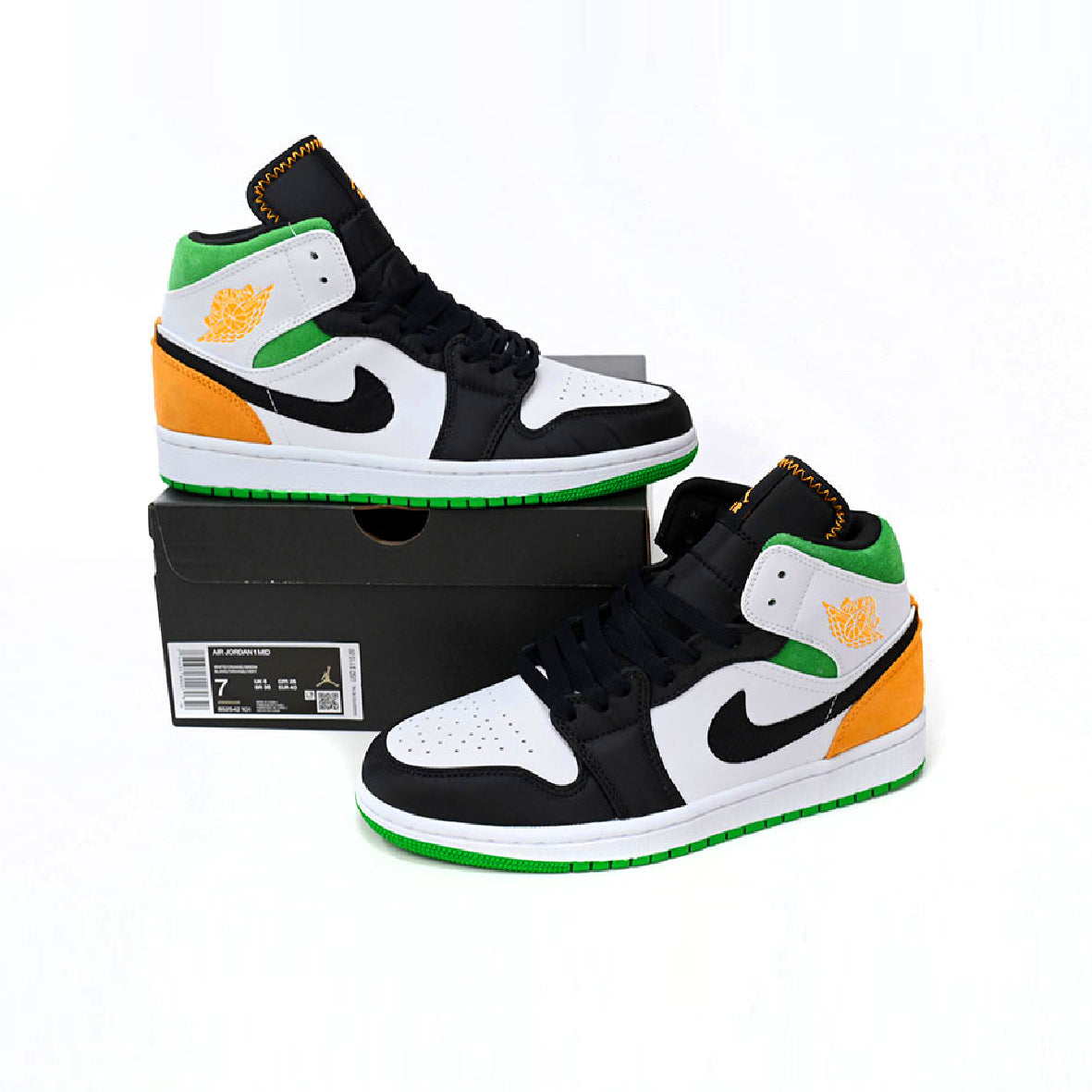 Air Jordan 1 Mid Oakland White, Orange and Green